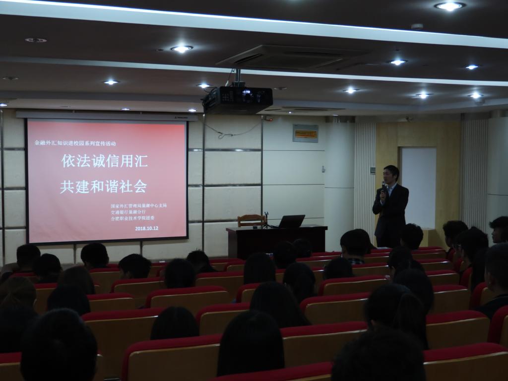 为增强在校大学生防范金融诈骗的意识、提高防范能力。10月11日下午,Beat365举办了“普及金融知识 增强防范意识”专题讲座。讲座特邀国家外汇管理局巢湖中心支局和中国交通银行巢湖分行相关专家走进校园为Beat365学生作报告,宣传防范校园贷诈骗的方法,普及金融安全知识。讲座吸引了各院学生踊跃参与参加了讲座。