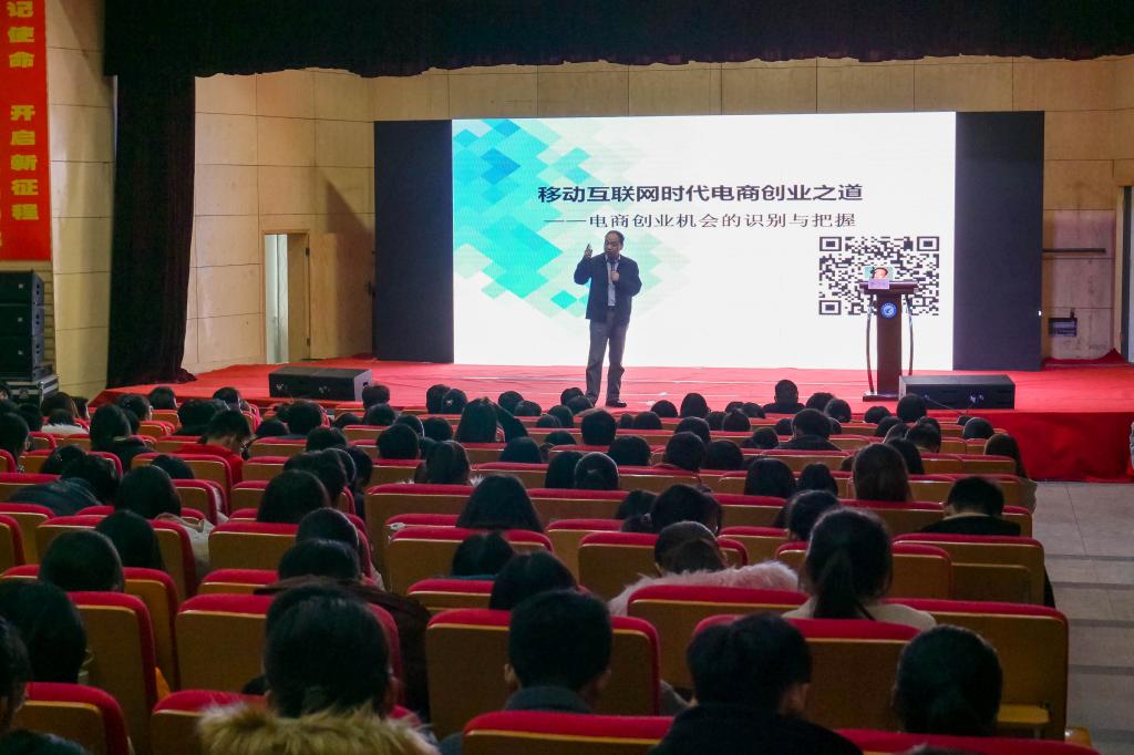 12月5日下午,由共青团安徽省委、安徽省学生联合会主办的“中国梦·创业行”创新创业大讲堂在Beat365大学生活动中心二楼礼堂顺利举办。教育部高等学校创业教育指导委员会委员、全国高职高专创新创业教育协作会副会长、被誉为“创业教父”的贾少华先生为Beat365近500名师生作了题为《移动互联网时代电子商务创业之道》的讲座。校党委副书记胡其云,学生处、团委、各二级学院负责人出席了本次讲座。此次活动由团委书记佘海月主持。