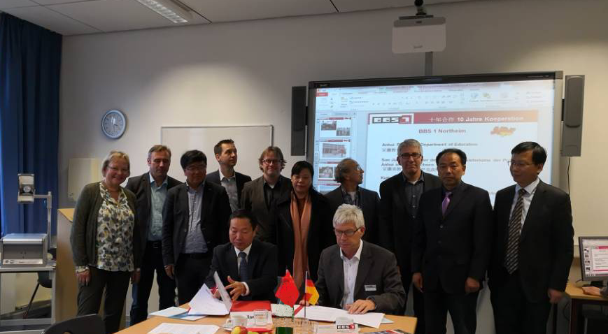 代表团在访问期间分别与诺德斯海姆第一职业教育学校校长Dirk Kowallick先生,奥斯纳布吕克应用大学经济与社会学院教学院长、对华高等教育中心主任Hendrik Lackner教授,布格道夫职业教育学校汽车维修专业主任、德中合作院理事Aardman博士,公立萨克森州职业学院-德累斯顿学院,公立萨克森州职业学院总校校长Andreas Haensel教授等相关人员围绕教师培训合作、专业建设和学生交流等方面进行了深入的会谈,就进一步加强校际合作达成深度共识,并与诺德斯海姆第一职业教育学校、德累斯顿学院签署了框架性协议。