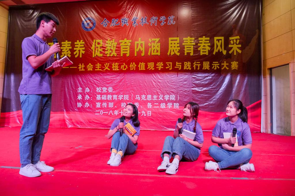 12月19日下午,由校党委主办,基础教育(马克思主义)学院承办,宣传部、团委、各二级学院协办的社会主义核心价值观学习和践行展示大赛在大学生活动中心拉开帷幕。此次比赛邀请了校宣传部部长魏华、学生处处长高恒平、校团委书记佘海月、基础教育(马克思主义)学院党总支书记张海青、基础教育学院院长唐晓武、基础教育学院副院长唐绍霞、教务处副处长窦红平共七位老师担任此次大赛评委。校党委书记罗兆好,党委副书记胡其云,全体思政课教师和部分学生代表共四百余人观看了此次比赛。