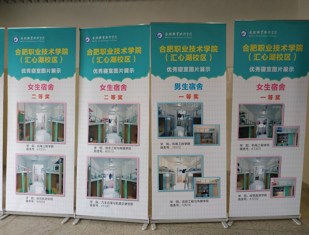 为扩大影响、树立典型,学校将优秀寝室图片制成海报在每栋公寓楼下进行展示宣传,激励全体学生以榜样为镜,向之学习,向之效仿。