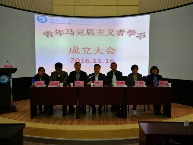 大会在庄严的国歌声中拉开帷幕。学院党委副书记胡其云、教务处处长宋风长、学生处处长高恒平、团委书记佘海月、学生处副处长王克勇、思政部主任靳玉琼、思政部全体老师以及数百名准备参加青年马克思主义学会的学生参加了成立大会,会议由思政教研室主任夏元珍老师主持。