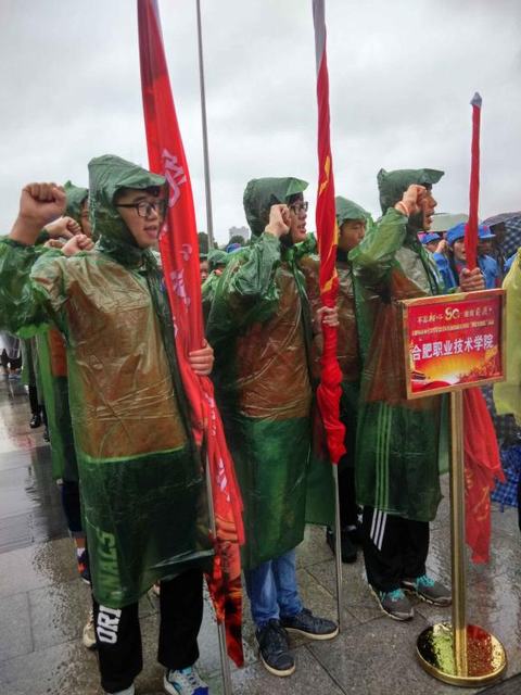 我院师生冒着大雨,举着团旗、校旗,一路上唱着长征歌曲,说着长征故事,相互鼓励,相互扶持,在党委胡其云书记的全程陪同下,最终全部到达终点,获得比赛的季军。值得一提的是,我院张维一、李绪玉、李忠锋、王康4名同学仅用了2个半小时就到达了终点,成为第一批到达的人员。
