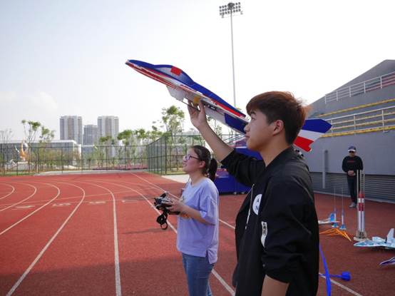 活动在校航模协会的精彩表演中拉开帷幕。随着“三、二、一,点火!”的口令响起,一支模型火箭腾空而起,拉开了航模表演序幕。只见一架架飞机模型陆续升空,参加启动仪式的同学们注视着天空,飞机模型做出旋转、俯冲等动作,赢得了同学们的阵阵掌声。据悉,为了办好此次航天日活动,机电工程学院航模协会的同学们在指导老师宋忠春的带领下早早就开始了准备,同学们商量表演流程,彩排表演环节,不仅为全校师生带来一场视觉盛宴,而且还为师生们详细介绍了航模有关知识,极大地激发了师生对航模的兴趣,使得这次航天日活动充满趣味。