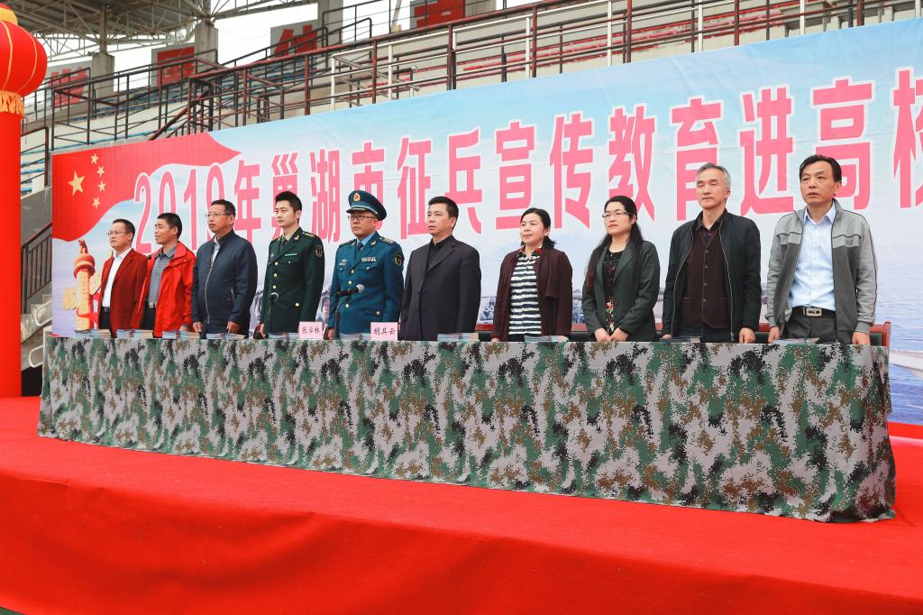 胡其云代表学校对市武装部领导的到来表示欢迎。他指出,切实做好大学生征兵工作是党和国家赋予高校的政治责任和历史使命,是高校全面贯彻党的教育方针、落实立德树人根本任务的重要工作。他总结了2018年征兵工作取得的成绩,分析了征兵工作出现的不足。他对今年的征兵工作提出几点要求:一要认清形势,以讲政治的高度做好征兵工作。各学院一定要把征兵工作作为一项严肃的政治任务,列入重要议事日程,严格落实征兵责任制,及时解决征兵工作中遇到的困难和问题。二要完善工作机制,认真落实政策。各学院、各职能部门要重点关心和培养退役复学的优秀大学生士兵,落实转专业政策,在学生干部培养、发展入党等方面优先予以考虑,并充分发挥他们在学校爱国主义教育、国防教育、校风校纪建设等方面的骨干作用。三要加大宣传力度,着力做好在校学生入伍征集工作。充分利用校园广播、展板、互联网微信微博等新型的传媒手段,确保征兵宣传动员工作深入细致,富有成效。四要严格把关,保证质量。严格执行征兵工作的各项政策规定,要一个环节一个环节的抓好落实,要从严从高标准,确保每一名新兵各项条件都符合要求。五要加强督导检查,确保各单位完成任务。学校武装部要继续实行各学院征兵工作进展情况周报告制度,及时掌握各单位进度,通报情况,加强调研督导,有针对性的开展工作。