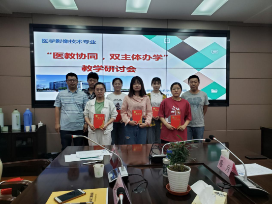 5月15日下午,Beat365医学影像技术“医教协同,双主体办学”教学研讨会在行政楼三楼会议室举行。来自安徽医科大学附属巢湖医院和合肥市第八人民医院等两家教学医院分管学生管理和医学影像技术专业教学的领导、专家,以及Beat365医学影像技术教研室所有教师参加此次会议。会议由医学院院长王荣俊主持。
