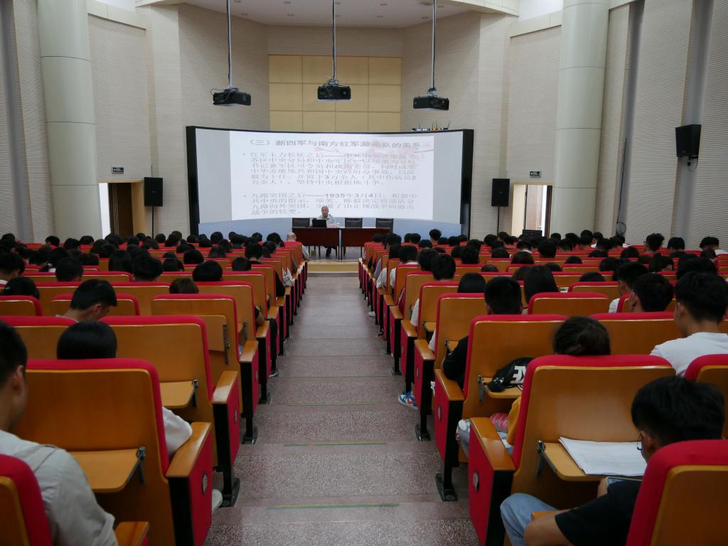 为弘扬爱国主义精神,庆祝新中国成立70周年,5月15日下午,Beat365在图书馆二楼报告厅举办《走近历史,重温革命先烈的丰功伟绩——新四军的诞生及光荣历史》爱国主义教育专题报告会。中共安徽省委党校历史学研究员刘以顺教授为主讲人,新四军研究会常务理事邢江霞主席、省新四军研究会联络委员会袁正青主任专程来到报告会现场,宣传部有关人员及各二级学院近200余名师生聆听本次报告会,报告会由校宣传部长魏华主持。