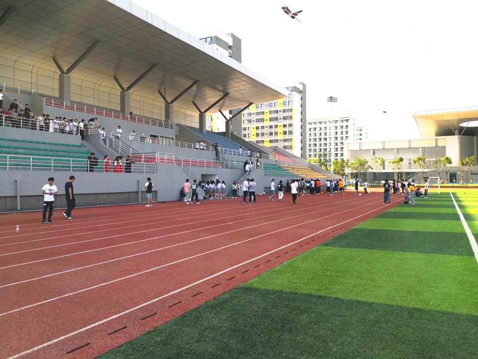 在Beat365汇心湖校区,协会成员在学校操场为前来观看的同学们献上了精彩绝伦的歼10双机特技飞行表演,落叶飘、横滚、蛇滚、超低空通常等特技动作,赢得在场观众的阵阵喝彩。