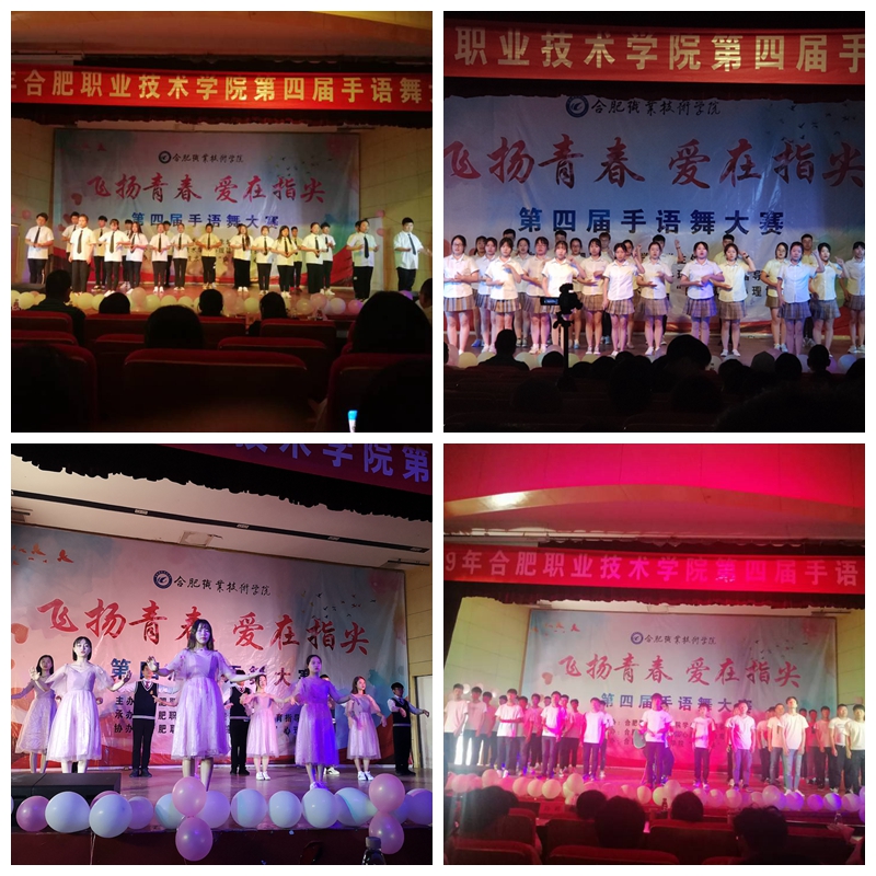 温馨的音乐,灵动的手语,璀璨的舞台,热情的观众,合职学子集聚一堂。来自各二级学院共计八支参赛队伍的表演精彩纷呈,尽显风采。灯光下的舞者用手之舞,表心之语,轻柔的指尖,舞动出爱的奇迹,带给观众视觉的享受与心灵的感动。动感振奋的《我们都是追梦人》,古韵大气的《国家》,阵容庞大,动作整齐划一,点燃了在场每一个人的热情。天使般真情演绎的《和你一样》、轻扬曼舞的《仰望星空》用无声的手语划出了唯美,深深感染了在场的每一位观众。《阳光总在风雨后》不惧风雨,拥抱灿烂;《夜空中最亮的星》青春梦想,坚持追随;《我们都一样》分享力量,努力前行。同学们带着年轻的底气与冲劲,向每一颗年轻的心展示着热爱的力量……别出心裁的队形转换,细腻流畅的动作展示,舞蹈与手语巧妙结合,勾勒出一幅幅动人的画面,手语之美,尽显其中。