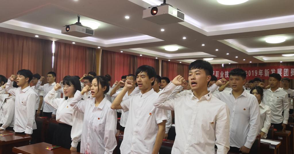 下午2点30分,活动在庄重又激昂的国歌声中正式开始。校团委和各二级学院团总支老师为每一位新团员佩戴团徽,发放团章和团员证,老团员代表带领全体新团员进行入团宣誓。当一枚枚闪亮的团徽戴在胸前时,当铿锵有力、神圣庄严的入团誓词响起时,同学们身为共青团员的光荣感油然而生。新团员和老团员代表分别发言,表达了做为新时代共青团员强烈的责任感和使命感,为实现中国梦而努力奋斗的坚定决心。