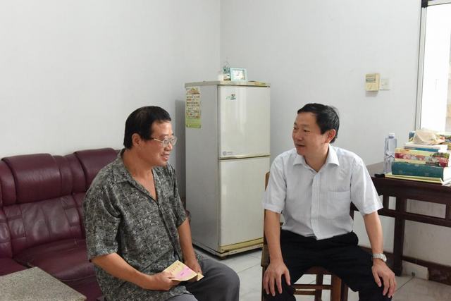 在我院基础部杨恭才老师家中,罗兆好对杨老师“让每一位学生都在课堂上受感染”的教学精神表示敬意,对他在工作上兢兢业业的精神表示钦佩,并亲切询问了杨老师的身体健康情况,嘱咐他安心休养,继续为学院教育教学奉献自己的力量。