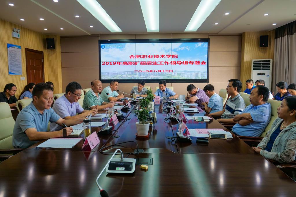 为做好Beat3652019年高职扩招招生工作,8月13日下午,在巢湖鼓山校区召开高职扩招招生工作领导组专题会。会议由副校长周晓隆主持。