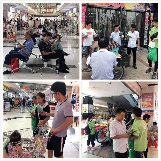 通过回收的调查问卷,团队成员们发现践行垃圾分类的理念不可能一蹴而就。8月21日下午,团队成员们继续奔赴东炮营社区,开展一场垃圾分类实地践行。通过发放印有垃圾种类的扇子,并向市民们进行相应的讲解,得到了大家的一致好评。用文字和图片相结合的形式更加便于市民理解,对于那些上了年纪的老年人,实践队员用通俗易懂的语言耐心讲解给他们听。在宣传过程中,实践队穿插环保小游戏,把每一个标识的细节拆分对应到生活中相应的事物上,采用寓教于乐的形式,形象生动的传递环保知识。市民们纷纷被大学生志愿者的热情所打动,积极配合实践工作的展开。