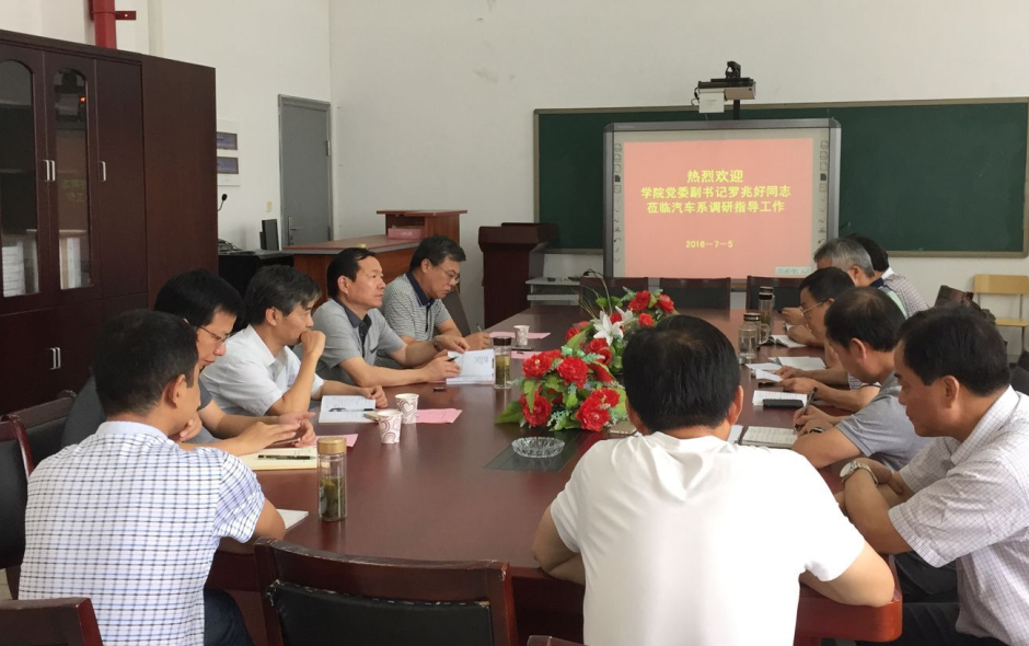 在听取完汇报后,罗兆好副书记作了讲话。他说,这次来的主要目的是熟悉汽车系的情况、认识汽车系的老师。各位老师在汽车系的发展过程中付出了大量心血,他对此表示感谢,希望大家继续拼搏努力,把汽车系办的更好。罗兆好副书记说,工作中出现的一些问题,是发展中的问题,我们首先要正确看待,然后认真研究,进而解决问题。汽车系下一步的工作打算坚持了问题导向,希望汽车系进一步把工作做好做扎实,学院将一如既往地给予支持和服务。讲话最后,罗兆好副书记对汽车系教职工提出了三点希望。一要为创建地方技能型高水平大学再立新功;二要提升内涵,打造特色品牌专业;三要强化学生管理,贴近学生、帮助学生,以人为本,寓教于情,不断总结方法和规律,把学生管理中的难点变成亮点,问题变成经验。