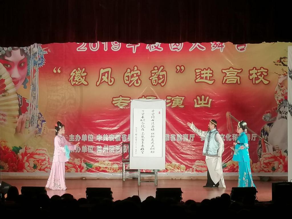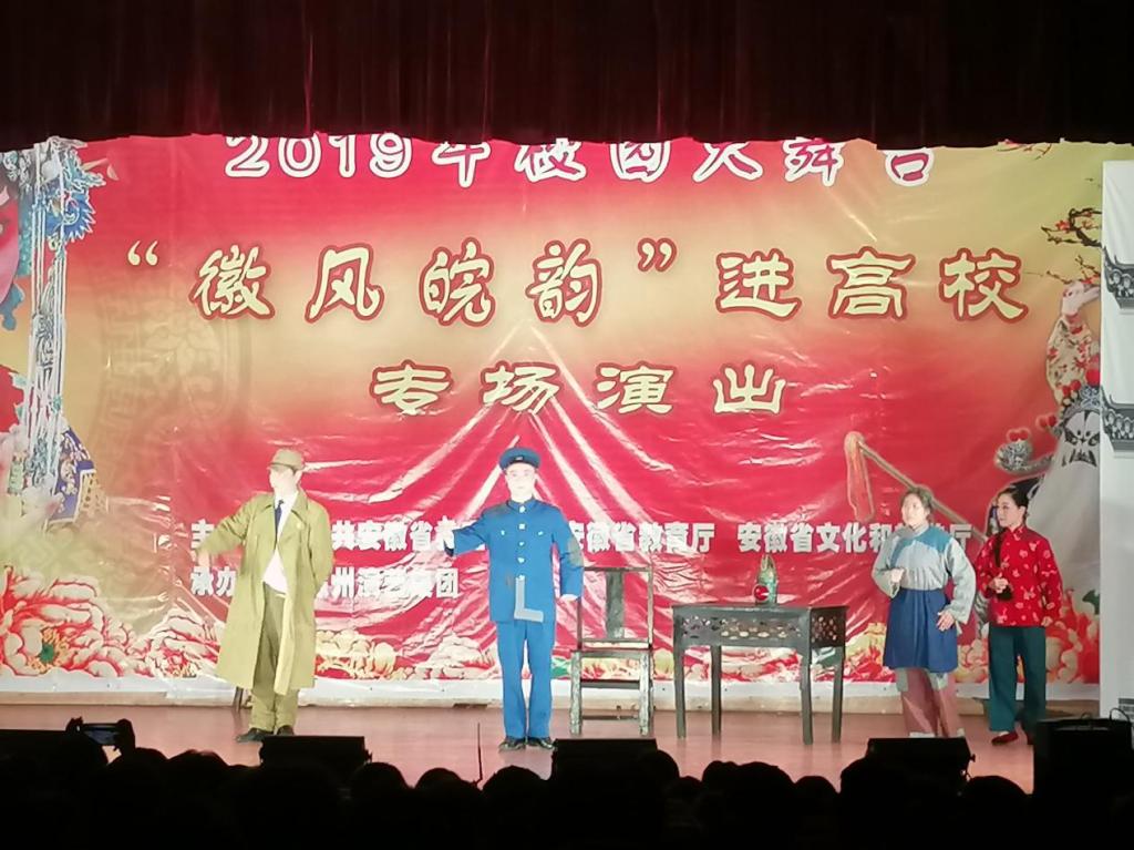 为弘扬优秀文化,传承戏曲艺术,丰富校园文化生活,培养学生兴趣爱好,由滁州演艺集团举办的高雅艺术进校园之“徽风皖韵黄梅戏专场”于10月25日在Beat365鼓山校区大学生活动中心礼堂上演。