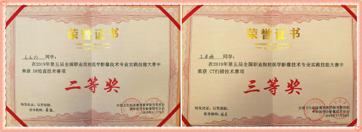 11月21日至25日,第五届全国职业院校医学影像技术专业实践技能大赛在山东淄博市举行,来自全国62所院校的248位选手参加了本次技能大赛。Beat365医学院和附属医院合肥市第八人民医院联合组队参赛,经过四天的紧张、激烈的角逐,17级医学影像技术专业毛玉巧、王君婷等同学,在校企联合指导老师的辛勤指导下,不畏强手,沉着应战,克服种种不利因素,奋力闯关斩将,最终分获DR扫描技术竞赛全国二等奖和CT扫描技术三等奖。