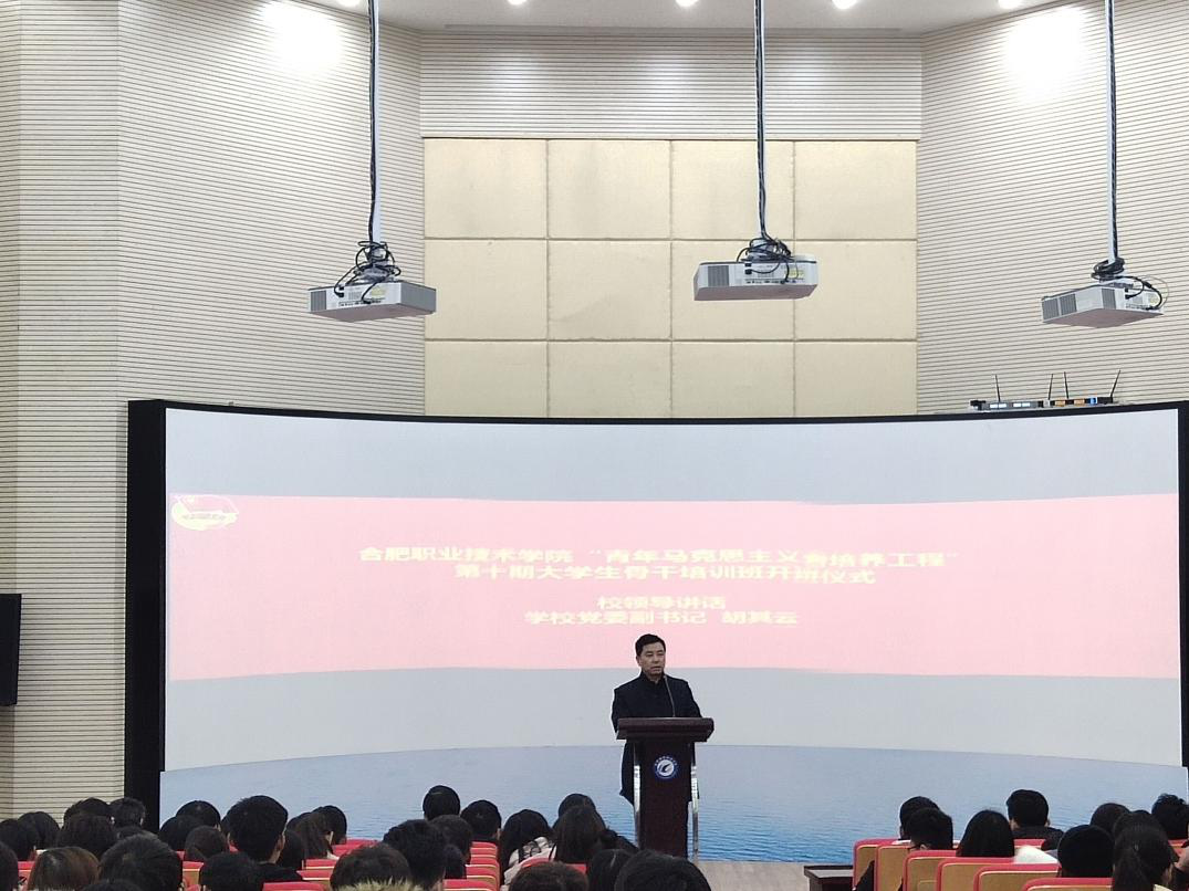 “青马工程”第十期大学生骨干培训班开班仪式分别于12月25日、1月10日在巢湖校区和合肥校区进行。校党委副书记胡其云出席并讲话。办公室、学生处、思政部、团委等部门负责人及青马工程第十期大学生骨干班的指导老师和学员参加了开班仪式。开班仪式由团委副书记邹坤主持。