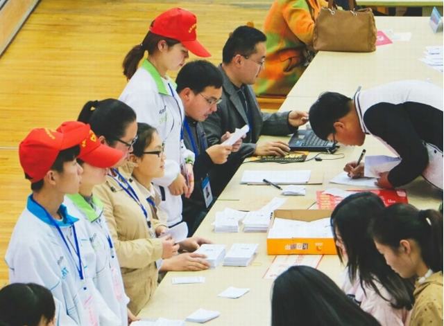 4月5日早上6:30,志愿者们集合完毕,奔赴各自岗位。志愿服务站点的同学们精神抖擞,笑容满面,耐心解答考生的问题。体育场外,考生们在志愿者的安排指引下排起了长龙般的队伍,秩序井然;中午时分,还为排队的考生们送上了面包和水。报到处,志愿者们协助老师填写表格,发放准考证,维持现场秩序。食堂里,志愿者们开展文明就餐劝导,倡导“光盘行动”。宿舍区,志愿者们引领考生及家长参观宿舍,了解住宿设施和环境。协助招生就业处老师接听考生电话咨询和协助后勤部门发放午餐券的志愿者们也耐心、细致地完成了任务。
