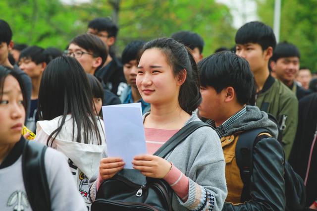 排队时,有的考生在与新认识的朋友小声交流,有的则不时关注着队伍的前方……等待也是一次人生的修行!