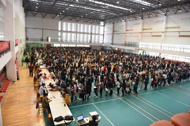 只见体育馆门前排着一条条长龙,见证了我院分类考试招生报考的火爆场面。其中,普高的汽车系、经贸系、医学分院和中职(对口)护理专业等考生报到数量持续飙升。整个报到现场热闹而井然有序。