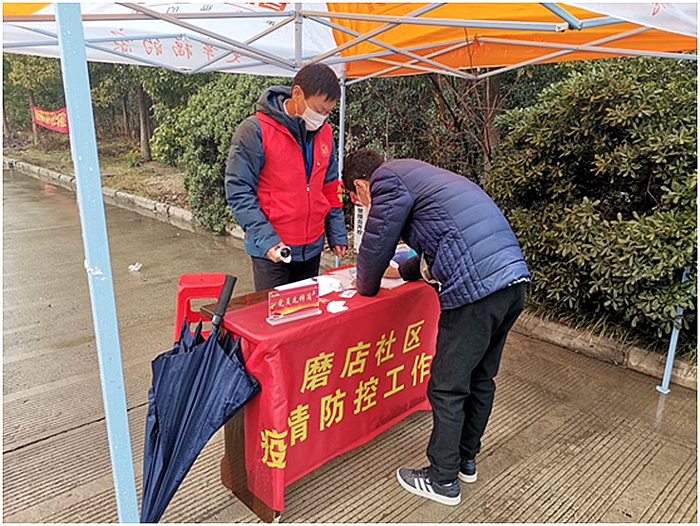 面对新型冠状病毒肺炎疫情的严峻形势,在合肥市委和合肥市教育工委号召下,Beat365机电工程学院党总支副书记丁迎春同志冲锋在前,主动投身到疫情防控阻击战中,下沉至磨店社区管委会参与值守一线疫情防控工作,与社区工作人员并肩抗疫。