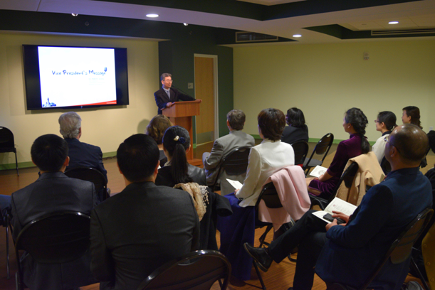 纽约时间2月29日11时,布隆菲尔德学院2016年春季“国际学者课程班”开幕式在该学院Franklin Hall多功能厅举行,院长Richard A. Levao、副院长Tresmaine Grimes和Peter Jeong、教师代表Kenneth Williams教授和Rebecca Teichman教授以及中国访学团全体成员出席开幕式。会议由布隆菲尔德学院国际部副主任Joonseob Park主持。
