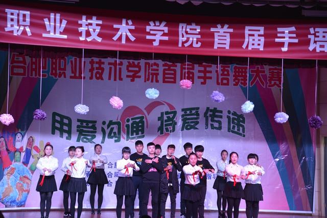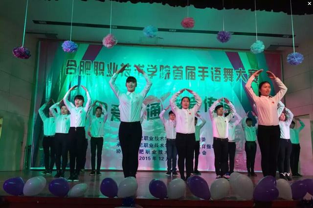 优美的旋律,绚丽的舞蹈,璀璨的舞台,热情的观众,合职学子集聚一堂。来自各系(分院)共计15个参赛队伍的表演精彩纷呈,尽显风采。灯光下的舞者一次又一次地用充满青春热情的手语舞蹈给观众带来视觉的享受与心灵的感动。真挚感人的《天亮了》、情景交融的《阳光总在风雨后》、美好憧憬的《仰望星空》、进取向善的《三德歌》、唯美动人的《冰凌花》、激情奋进的《怒放的生命》、涓涓恩情的《跪羊图》、青春活力的《我最闪亮》……别出心裁的队形转换,细腻流畅的动作展示,舞蹈与手语巧妙结合,勾勒出一幅幅动人的画面,手语之美,尽显其中。最后,经贸系15工造2班代表队的《国家》获得本届手语舞大赛一等奖。