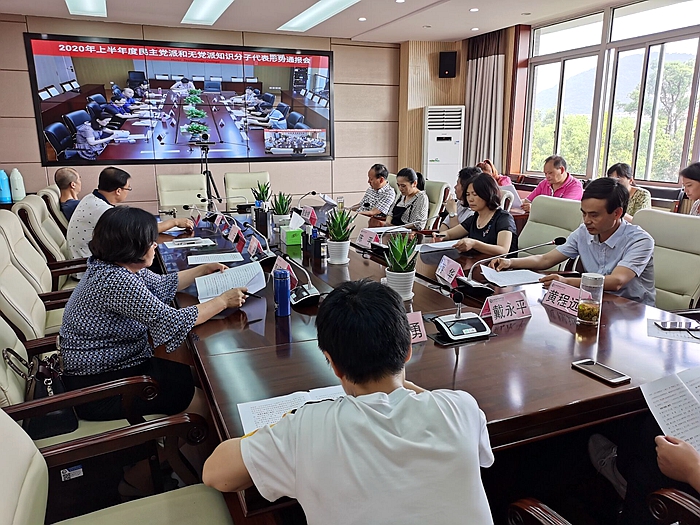 7月10日下午,Beat365在鼓山校区行政楼三楼会议室和汇心湖校区行政楼627会议室通过视频会议召开民主党派和党外知识分子代表形势通报会暨建言献策座谈会。校领导、民主党派和党外知识分子代表、统战部有关人员参加了会议。会议由校党委委员、宣传(统战)部部长魏华主持。