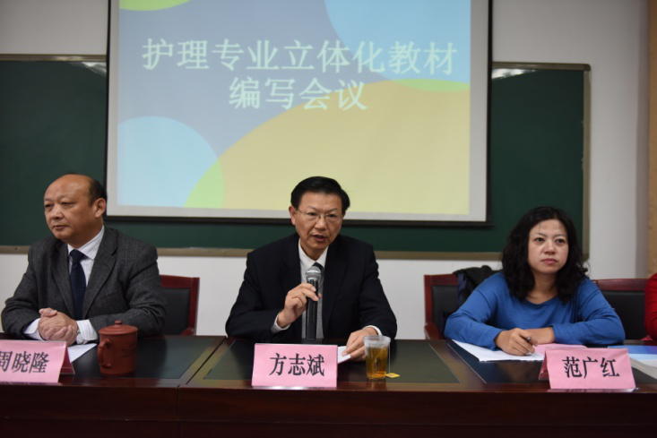 会议开幕式由教材编审委员会秘书长、医学分院院长周晓隆主持。方志斌院长出席会议并致辞,对参会的院校领导、老师表示热烈欢迎,他介绍了我院近年来的发展情况,同时对本套教材的再版表示大力支持。河南科学技术出版社医学分社范广红介绍了教材编写要求。《健康评估》教材主编王荣俊介绍了立体教材编写思路与规划设想,教材编写既要顺应信息化教学改革的趋势,也要突出职业教育特色。