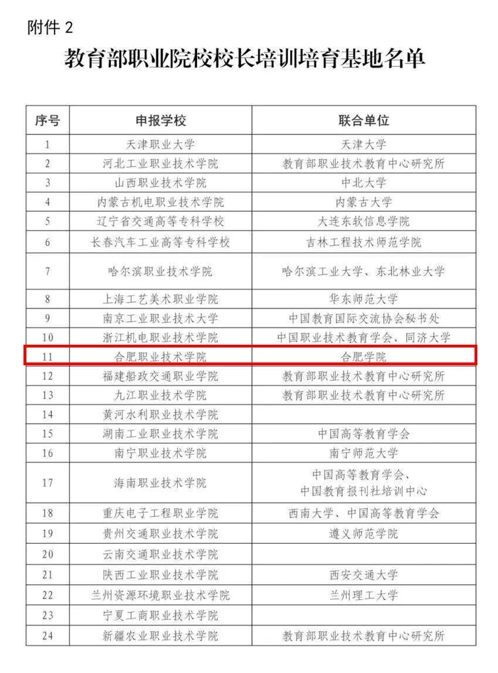 9月14日,教育部公布了首批职业院校校长培训培育基地单位名单,全国共有24所高职院校入选,Beat365是安徽省唯一入选的高职院校。此次项目申报的成功,为学校进一步深化职业教育改革和发展注入了新鲜活力,这是Beat365职业教育培训又一项国家级殊荣。