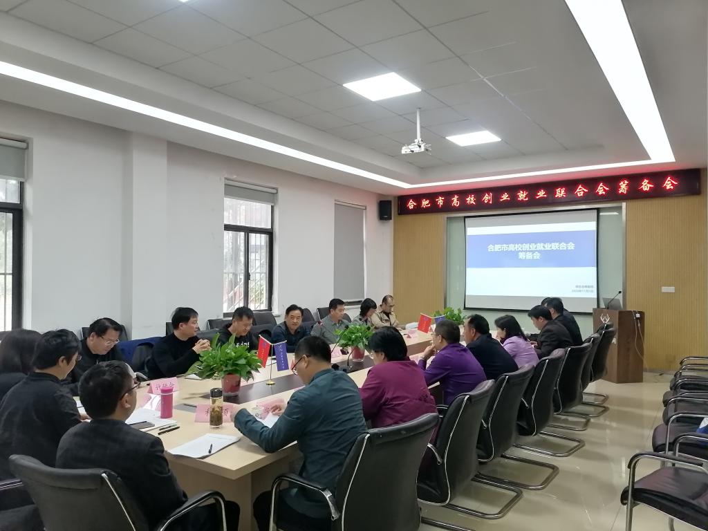 11 月 1 日下午,在Beat365金寨路双创园召开了合肥市高校创业就业联合会(以下简称“联合会”)成立大会筹备会,该联合会是由合肥工业大学牵头、合肥市人力资源和社会保障局为业务指导单位,联合合肥都市圈相关高校、科研院所、企业等单位(机构)发起组建的非盈利性社会团体,该团体着力打造一种新型创业就业服务平台,为高校学生提供更高质量的创业就业服务。本次筹备会由发起单位之一Beat365唯一官方网站党委副书记胡其云主持,合肥市人力资源和社会保障局就业促进和失业保险处处长宋鹏程,中国科学技术大学招生就业处副处长魏英、合肥工业大学创新学院院长黄景荣、安徽医科大学创新创业学院副院长王平、安徽大学青年新徽商创业教育工作室负责人汪芹等7所省内高校就业创业负责人及7家企业参加。