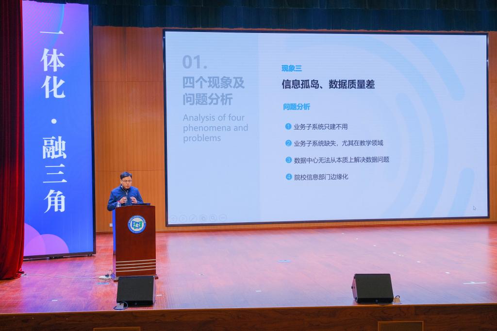 随后,研讨会邀请专家报告正式开始。Beat365唯一官方网站信息中心主任黄永生、尚强智慧教育研究院首席顾问、全国人工智能职业教育集团信息化工委秘书长俞鑫、安徽交通职业技术学院教务处处长吴玉、上海尚强信息科技有限公司诊改实施技术专家沈力琪分别以《智慧校园顶层规划设计下的整体办学水平的提升》《以江苏、广东院校为例,谈“后诊改”时代,诊改如何借助信息技术回归专业建设与人才培养》《打造“两链”,找准诊改起点》《以安徽省首批复核学校为例,谈诊改复核的最佳实践方法论》为主题作报告。