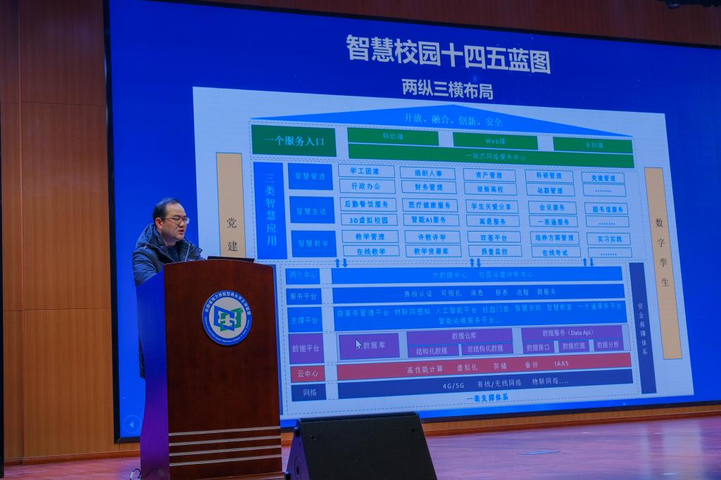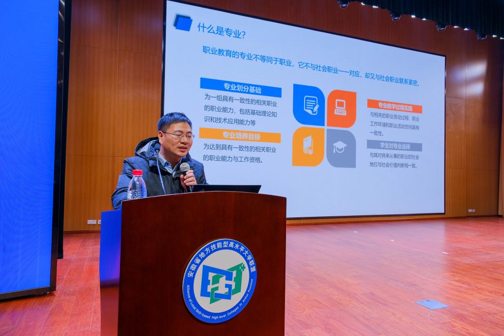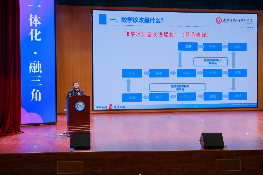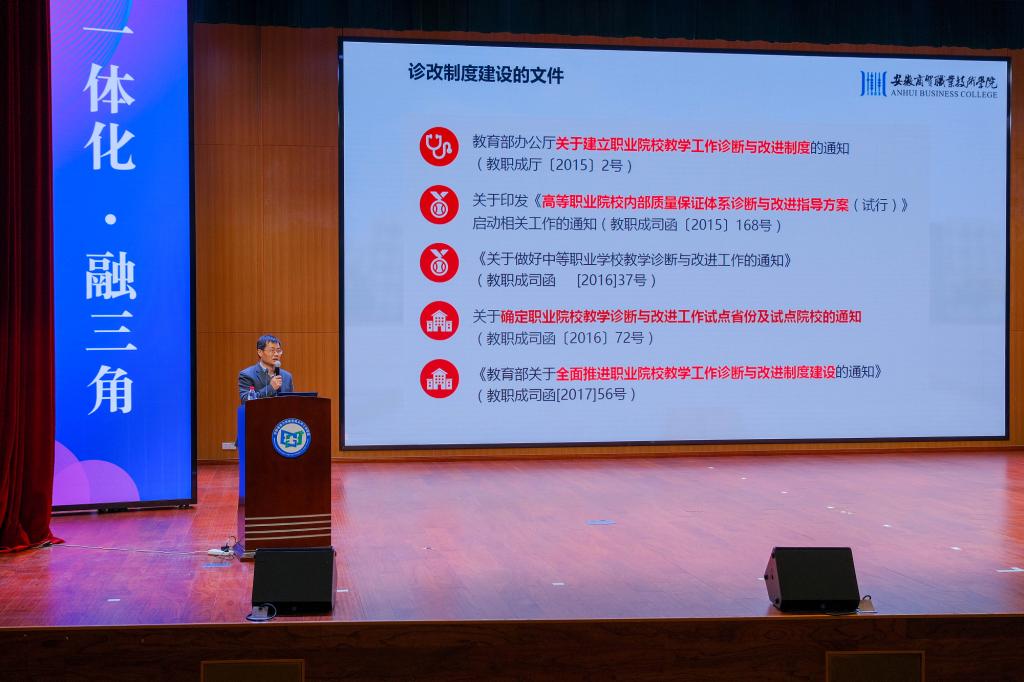下午,安徽商贸职业技术学院双高办主任、校企合作处处长汪伟、常州信息职业技术学院教务处处长邓志辉、安徽机电职业技术学院教学质量管理处处长张国政分别以《以教学诊改为抓手促进学校内涵发展》《双高背景下的专业群建设》《学院专业、课程层面诊改工作实务》为主题作报告。