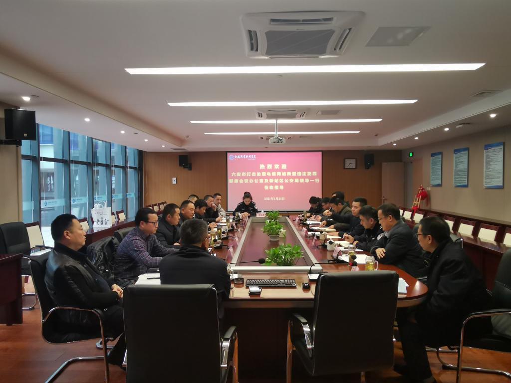 1月20日下午,六安市公安局刑警支队副政委丁静、裕安区公安分局副局长袁宏、皖西学院学生处副处长许锐敏及合肥市公安局刑警支队政治处主任孔维军、新站区公安分局副局长郑金良、磨店派出所所长焦长俊等一行十人来校调研反电信诈骗宣传防范工作,校党委副书记胡其云在汇心湖校区接待了客人,并召开了座谈会。保卫处、学生处、宣传部等部门参加了座谈会。