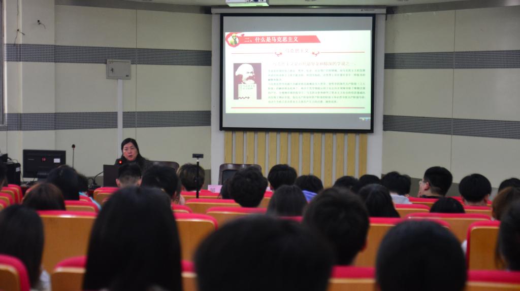 本次宣讲特别邀请马克思主义学院院长靳玉琼教授担任主讲,宣讲主题为“马克思主义为什么行”。靳玉琼院长主要从马克思的一生、什么是马克思主义、为什么要信仰马克思主义三个方面来阐述,从理论、实践的角度出发,解读了马克思主义的内涵和价值。靳玉琼最后指出作为马克思主义中国化最新成果,习近平新时代中国特色社会主义思想回应了中国的时代课题和人类面临的共同问题,为实现中华民族伟大复兴的中国梦提供了强大思想武器。