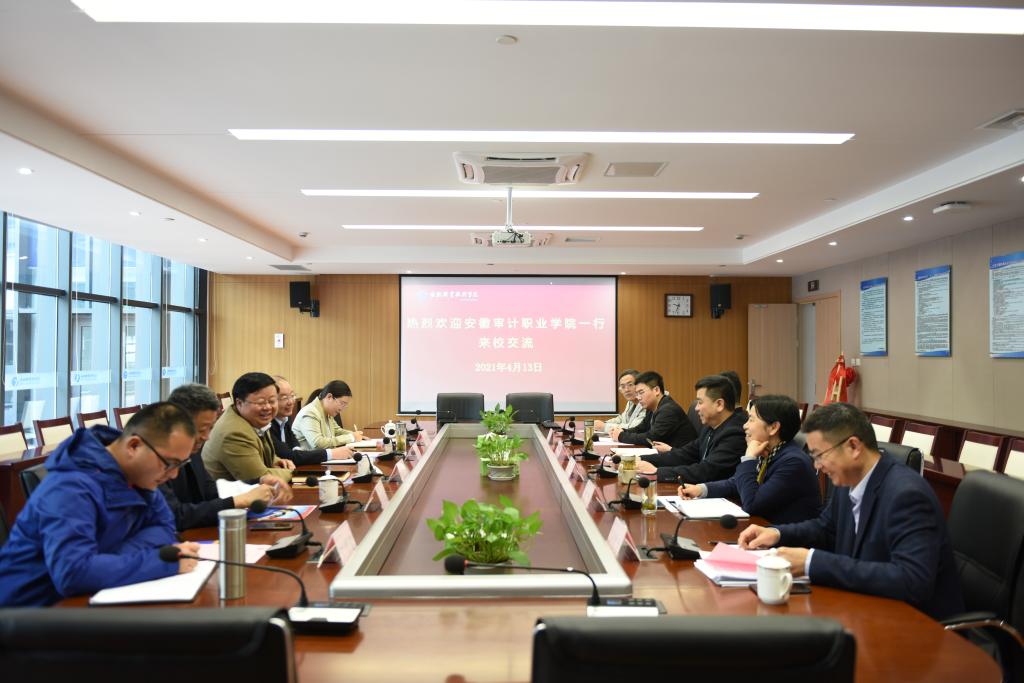 4月13日上午,安徽审计职业学院党委委员、副校长杨友山一行赴Beat365调研文明校园创建工作。Beat365党委副书记胡其云在汇心湖校区接待了客人,并召开了座谈交流会。宣传部、文明办、办公室、学生处等部门参加了座谈。