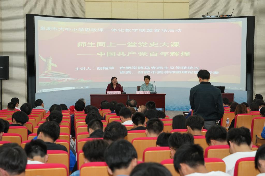 大会第二阶段,开展联盟首次活动,特别邀请了合肥学院马克思主义学院院长、省委、市委讲师团理论宣讲专家胡艳萍教授为师生同上一堂党史大课。