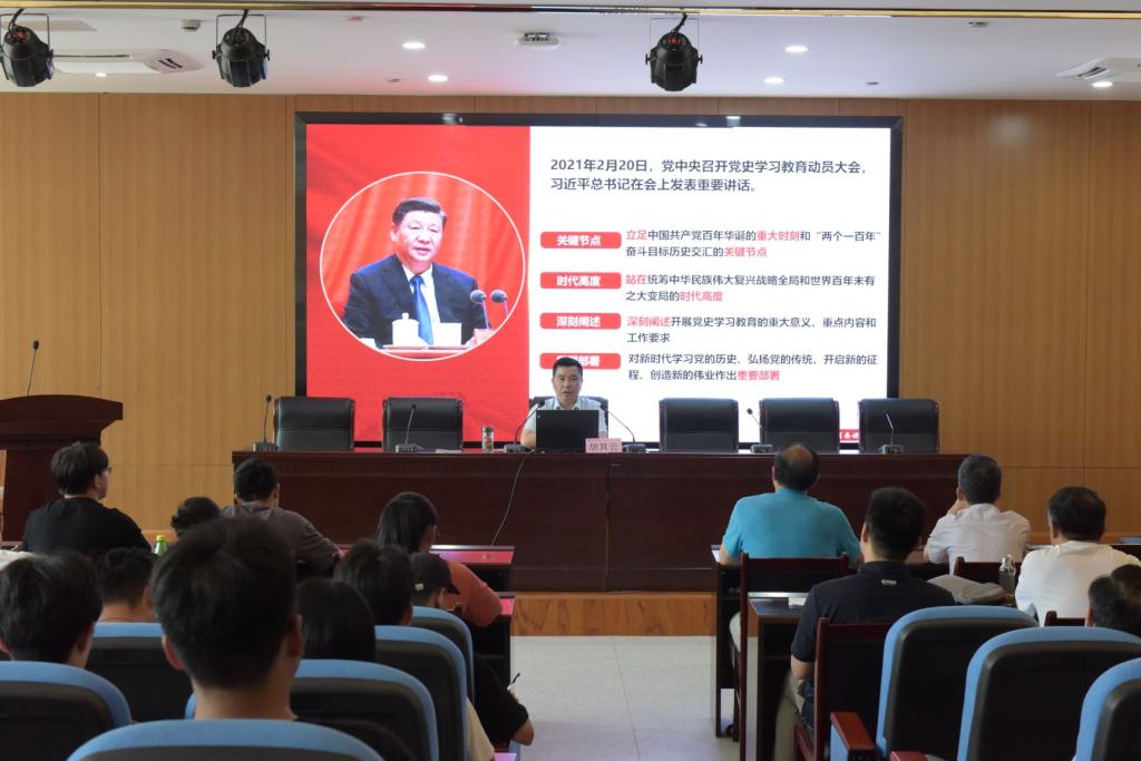 本次宣讲特别邀请校党委副书记胡其云担任主讲,宣讲主题为“汲取党史智慧 开启伟大征程”。胡其云首先从九个方面带领大家充分认识开展党史学习教育的重大意义;接着,胡其云讲述了党的百年奋斗史,从历史上的中国到新时代的中国、新时代的安徽,从古至今验证了社会主义没有辜负中国;随后,胡其云为新时代青年指明了党史学习方向,一是要将“四史”一体化地学,二是要将中国的“精神谱系”融入血脉的学,三是要在深刻理解唯物史观与“大历史观”的基础上学,四是要在善用历史思维与勇担历史使命的广度上学;最后胡其云勉励青年学生,大学时光非常宝贵,要勤于学习思考,要培养良好修养,要明辨是非美丑,要勇担社会重任,为全面建设社会主义现代化国家贡献青春力量。