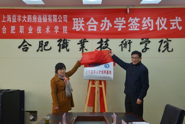 12月10日上午益丰连锁大药房集团人力资源总监杨柳一行来到我院,代表公司与我院举行人才培养基地和“益丰班” 签约揭牌仪式。签约仪式由生物系主任朱道林主持,方志斌院长与杨柳总监签约,孙兴林副院长和杨柳总监揭牌并分别致辞。两位领导认为校企合作是符合高等职业院校的办学宗旨,是高等职业院校发展的必由之路,是双赢互惠的,并希望以此为契机推动益丰和我院药学专业的纵深发展,促进人才培养模式和教学的改革,实现学校和企业人才培养就业的无缝对接;上海益丰连锁大药房人力资源部陈凯部长和“益丰班”班主任刘修树进行授牌仪式。实验实训中心、教务处、生物系负责人和有关专业老师也参加了签约仪式。