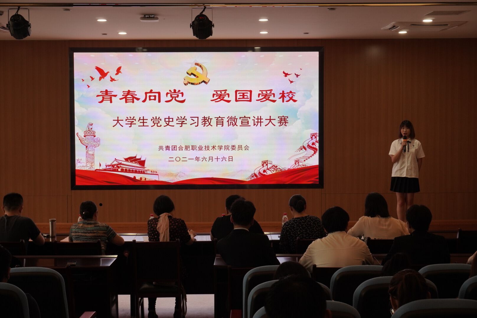 不忘来时路,奋进新征程。为迎接七一百年华诞,庆祝中国共产党成立100周年,推动党史学习教育深入青年、深入基层团支部、深入人心,号召广大团员青年共学党史,传承红色基因、革命薪火, 2021年6月中下旬,校团委成功举办“青春向党 爱国爱校”党史学习教育微宣讲大赛,本次大赛分校区举行,为期两周时间,鼓山校区管委会主任周泽山、机关分党委、校工会、学生处、宣传部、马克思主义学院、基础教育学院教师代表、各二级学院团总支专职团干分别担任本次大赛评委。