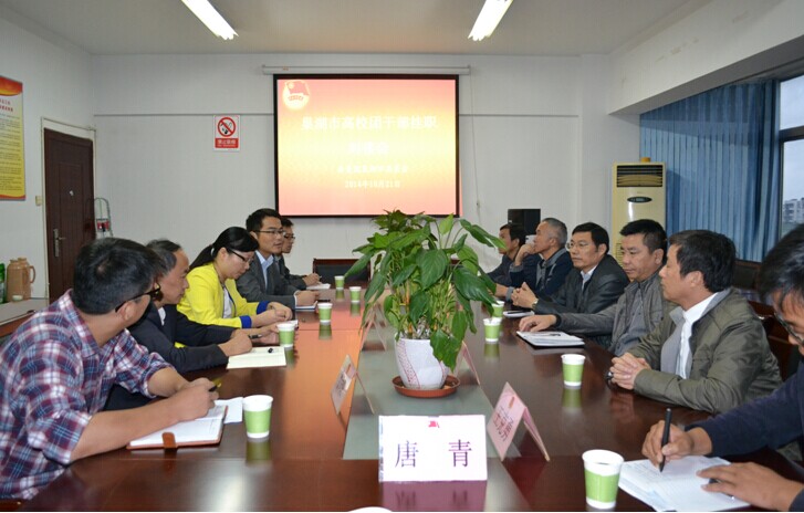 10月21日,院党委副书记胡其云率组织人事处、汽车系、团委等部门负责人送我院赴团巢湖市委挂职干部胡木林到岗报到。团巢湖市委组织召开了挂职对接会,巢湖市委组织部副部长翟大成、团市委书记魏明等出席了对接会。