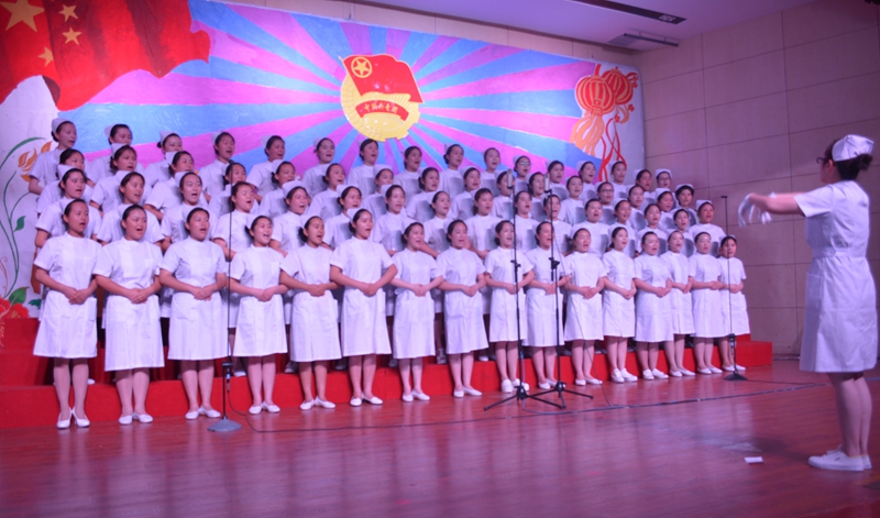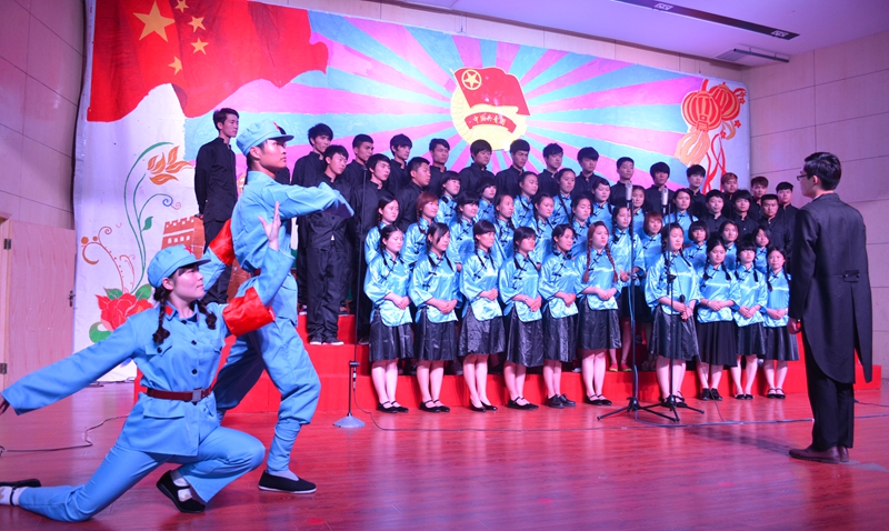 经过各系(分院)层层选拔进入决赛的10支代表队一一登台,高亢激昂的团歌拉开比赛的帷幕。医学分院选送的《中国护士之歌》颂扬了救死扶伤的人道主义精神和为护理事业无私奉献的高尚品质;计算机系选送的《四渡赤水出奇兵》气势磅礴、充满张力、震撼全场;生物系选送的《我相信》体现出励志向上、青春追梦的精神;经贸系选送的《精忠报国》热情奔放、豪气冲天,让现场的观众们热血沸腾;汽车系选送的《唱支山歌给党听》悠扬动听,深情的演绎把现场气氛推至高潮。每个参赛队伍精心准备,除了认真练唱,还在演唱中加入了朗诵、舞蹈设计,让节目更具魅力。