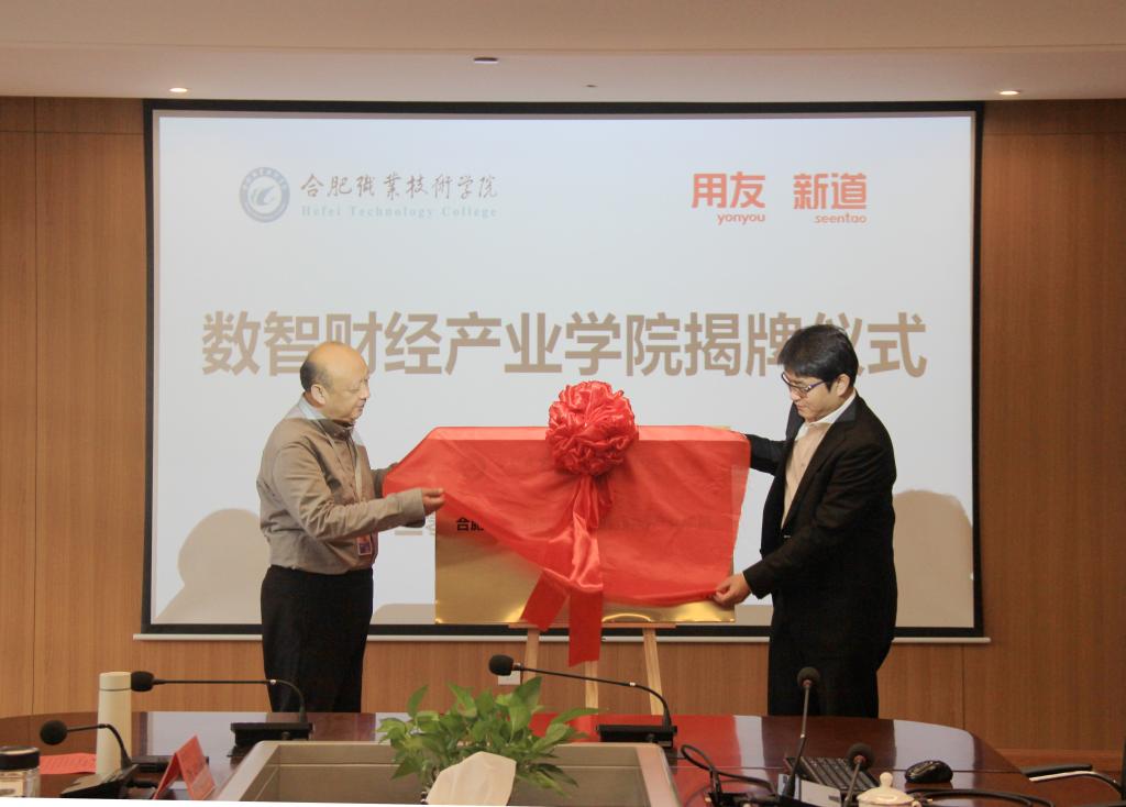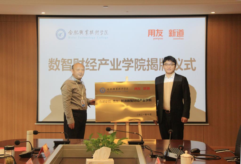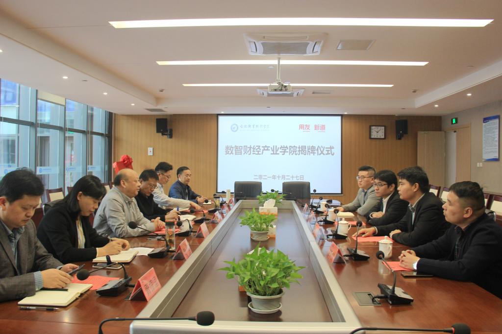 之后,在与会人员的共同见证下,周晓隆副教授和贾大明为“Beat365唯一官方网站-用友新道数智财经产业学院”揭牌。