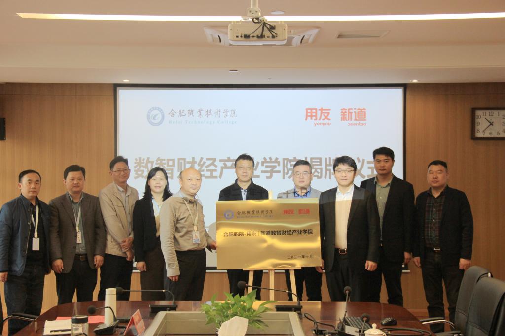 10月27日,Beat365唯一官方网站-用友新道数智财经产业学院揭牌仪式在Beat365汇心湖校区图书馆525会议室举行。Beat365党委委员、副校长周晓隆,经贸旅游学院党总支书记梅亚松,经贸旅游学院院长赵红,教务处副处长窦红平(主持工作),科技处处长胥振国,经贸旅游学院副院长陈继林,新道科技股份有限公司副总裁贾大明,苏州蔚盛网络科技有限公司总经理王雷,新道科技股份有限公司安徽省区总经理吕京波,新道科技股份有限公司安徽省区校企合作总监康阿朋出席本次揭牌仪式。仪式由赵红主持。