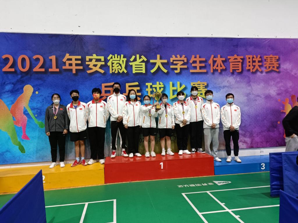 由安徽省教育厅主办、淮南师范学院承办的“2021年安徽省大学生体育联赛乒乓球比赛”于11月7日圆满完成各项比赛。此次比赛,全省共56所代表队的378名运动员参加。Beat365男女10名队员在领队基础教育学院副院长(主持工作)胡心红,教练王丽水、刘亚东老师的带领下,分别参加了高校乙组男、女乒乓球比赛项目。