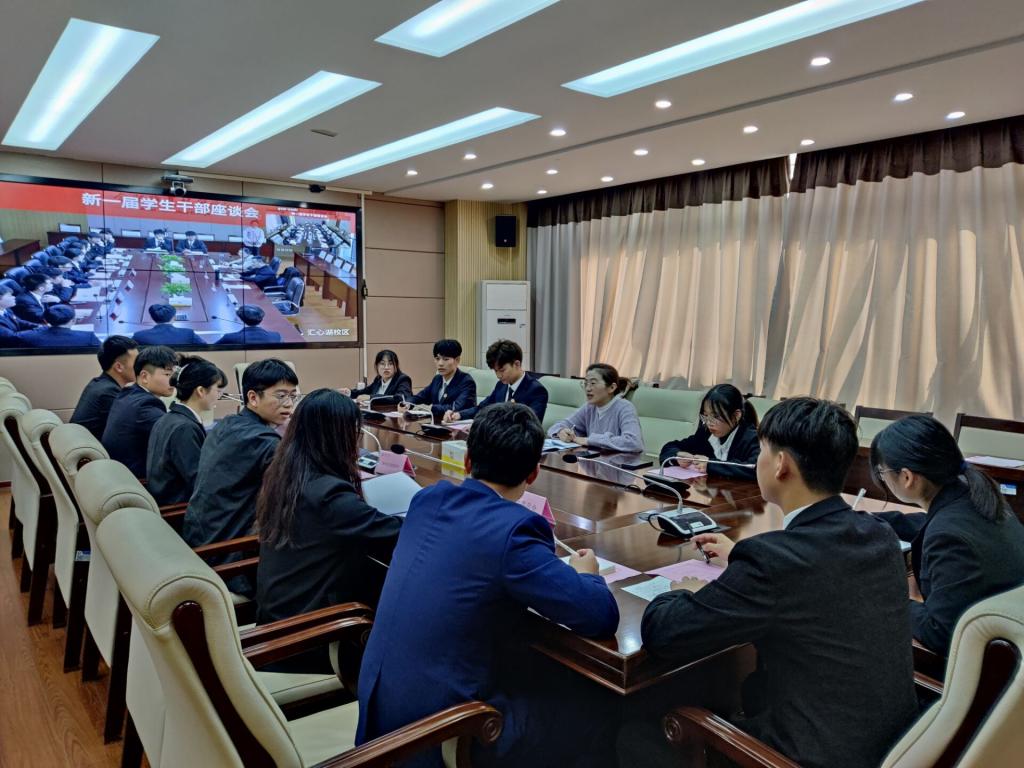 11月19日下午,Beat365新任学生干部座谈会在汇心湖校区行政楼627会议室、鼓山校区行政楼三楼会议室召开。出席本次会议的有校党委副书记胡其云、学生处副处长(主持工作)尹宗平、校团委专职团干以及团学组织新任主要学生干部代表。会议由校团委负责人赵倩倩主持。