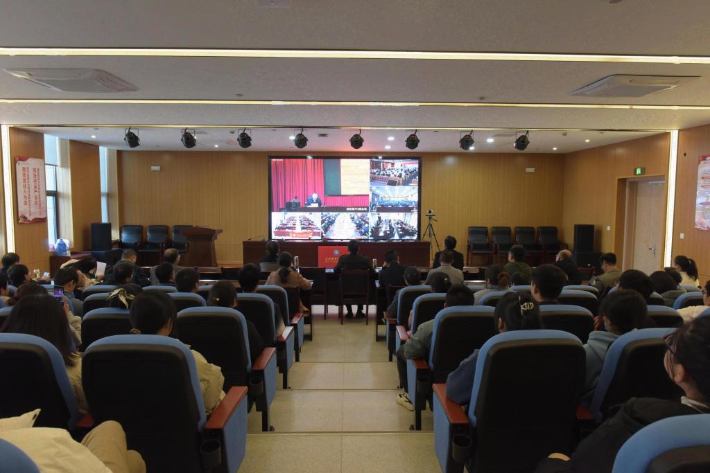 根据省委教育工委统一部署,12月1日下午,省委教育工委举行学习贯彻党的十九届六中全会精神省委宣讲团宣讲报告会,省委宣讲团成员,安徽中医药大学党委书记、教授王先俊同志作宣讲报告。Beat365在汇心湖校区图书馆一楼报告厅、鼓山校区行政楼三楼会议室设立分会场,学校领导班子成员,各部门、各二级学院主要负责人,专职思政课教师、辅导员代表、学生代表参加会议。
