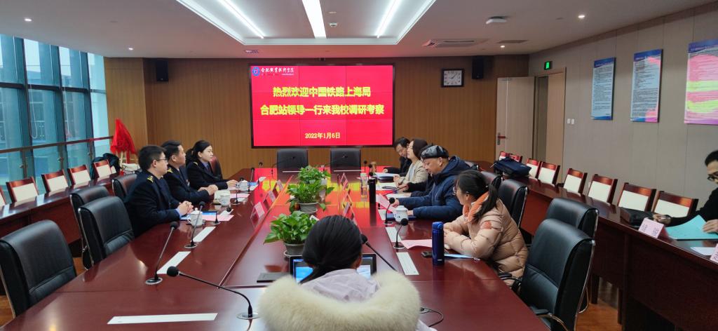 1月6日上午,中国铁路上海局集团有限公司合肥站党委副书记李家文一行来Beat365汇心湖校区参观调研交流。校领导胡其云、周晓隆,校团委副书记赵倩倩及轨道交通学院党政负责人等热情接待李家文一行。调研座谈会由副校长周晓隆教授主持。