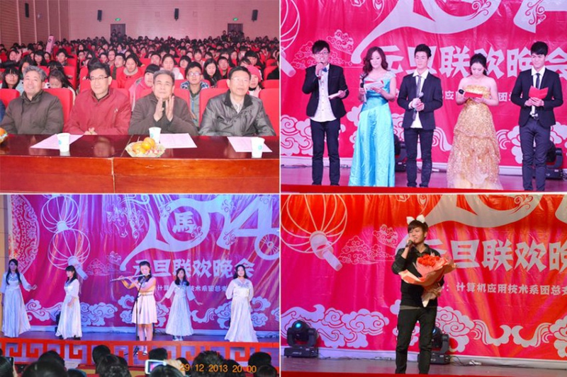12月29日晚7时,计算机系迎2014年元旦联欢晚会在大学生活动中心隆重上演。院党委书记丁家康、院长方志斌、副院长孙兴林和计算机系老师及同学们一起共同观看了文艺演出。