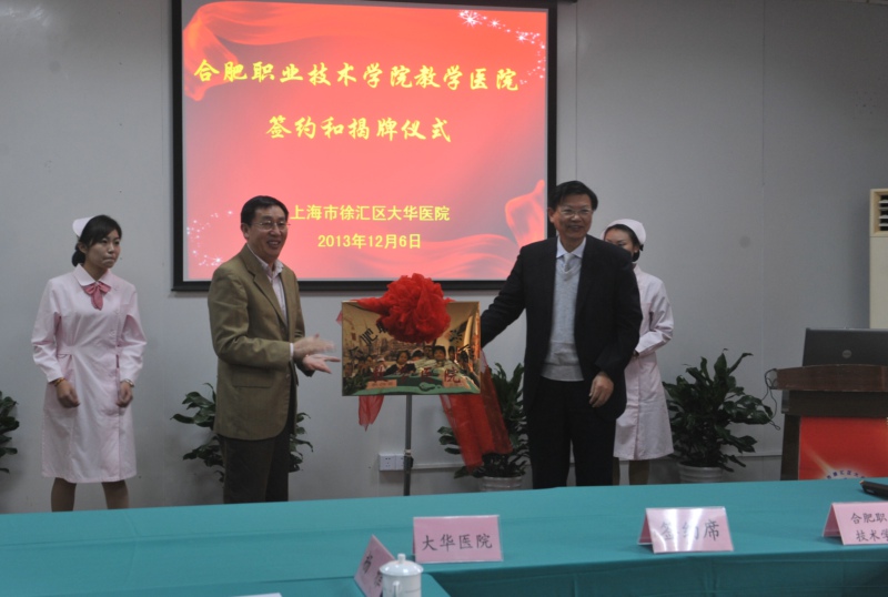 12月6日,方志斌院长亲赴上海大华医院,参加我院与上海大华医院护理专业“订单式”培养协议签字暨“教学医院”挂牌仪式。这是我院走校企合作、工学结合道路,提高教育教学质量,努力增强办学竞争力的又一举措,这也标志着我院与上海市大华医院的合作进入一个崭新的阶段。